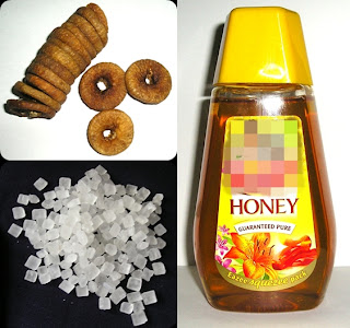 | figs-crystal sugar and honey image.Picture released into the public domain by author:Madhavi Madhurakavi. |
